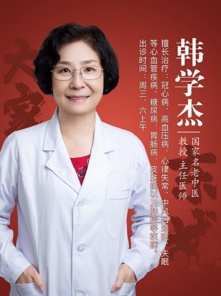 韩学杰,国家名老中医,东城中医医院特聘专家,主任医师,教授,研究员,医学博士,博士生导师,出诊时间周三、周五、周六上午。沈氏女科第二十代传人,至今从事中医临床工年,2000年被指定为国家人社部、国家卫生部、国家中医药管理局“两部一局”的全国第三批名老中医药专家沈绍功教授学术经验继承人。中医临床基础医学研究所中医药标准研究中心执行主任,兼任国家中医药管理局中医药标准化工作办公室副主任。擅长疾病:冠心病、高血压病、心律失常、中风后遗症、失眠等心血管疾病,糖尿病、胃肠病、皮肤病以及肿瘤,月经病、带下病、女性良性肿瘤、不孕症等妇科疾病及一些疑难杂症及疲劳综合征。
